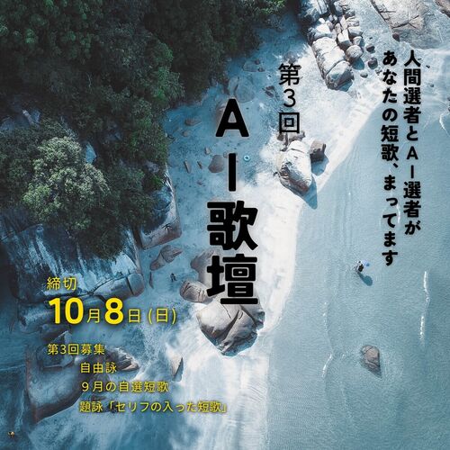 はじめに 大変遅くなってしまい申し訳ございません。旧Twitterで深水英一郎さんにより公募されていた第3回AI歌壇について、ようやく選評を記します。第3回 #AI歌壇 人間選者として中島裕介さん( @yukashima )にご参加いただきました第3回AI歌壇の締切は10月8…